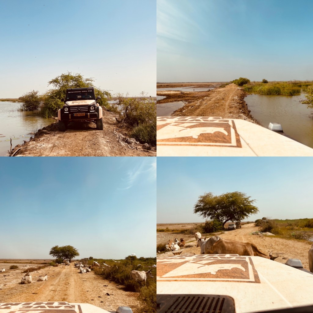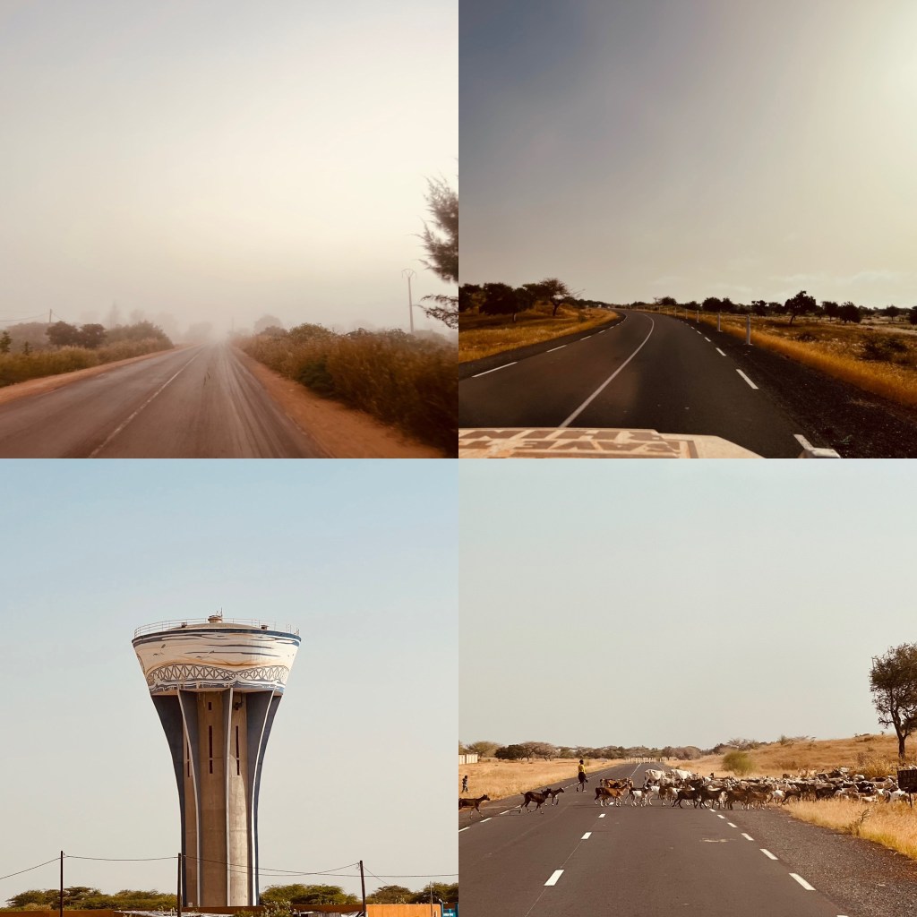 Om kwart voor zes springen wij in de auto, slaan het Lac Rose over (zijn wij in 2009 al een keer geweest en bleek toen meer bruin dan roze) even over en schieten de 1e 100 km helemaal niet op. Zware mist en veel dorpen = veel drempels, kopen onderweg 2 stokbroden (ontbijt startte om 06:30). Via Google maps kijk ik even de snelste/kortste route na, dat scheelt 1 uur met het roadbook, slaan dan links af om deze te kiezen en voor ons ligt ineens een strakke asfaltweg en de verloren tijd halen wij zo in. Willen ook graag als 1e team bij de grens aankomen.