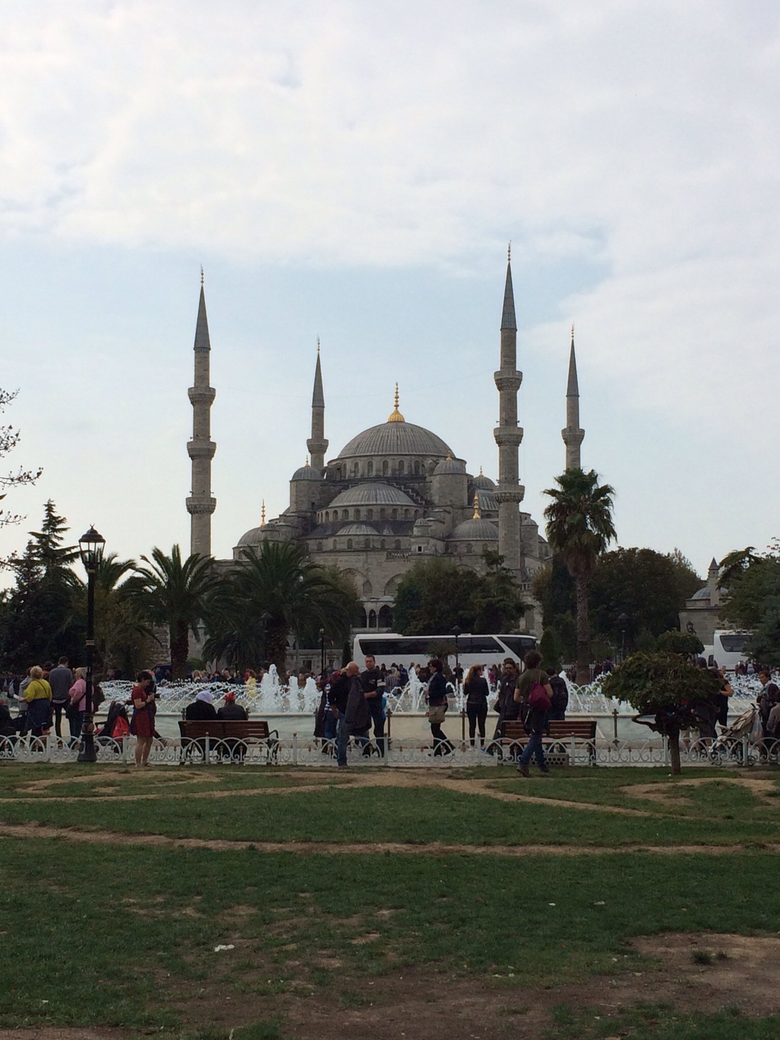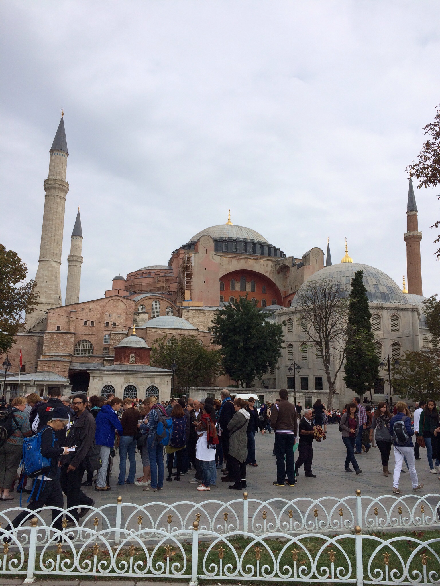 op pad om Istanbul te ontdekken. Omdat er 20 miljoen inwoners zijn, het weer een feestdag en ook nog zondag is, kun je je voorstellen, dat meer mensen dat idee hadden en bij de Hagia Sofia (de Blauwe Moskee) van de bus gehopt te zijn, zien wij voor de ingang een rij, waarvan wij schatten dat deze zeker drie uur lang wachten, is. Wij denken: gelukkig hebben ze de foto’s nog! en besluiten om weer op de bus te hoppen om alle andere bezienswaardigheden van Istanbul te zien.