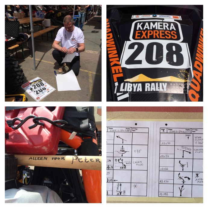 Op http://www.libya-rally-live.com zijn wij via een link gedurende de etappe te volgen wij rijden in de ssv klasse met startnummer 208. Ook via http://www.rallynaniacs.nl worden foto’s en nieuwtjes geplaatst. De foto met “Alleen voor Peter” betekent dat ik niet mag scheppen (thx Erno van Lieshout) Vandaag een kort bericht omdat ik mijn roadbook nog moet afmaken. Tot zover en wij weten niet of we morgen in het bivak internet hebben dus tot zover …