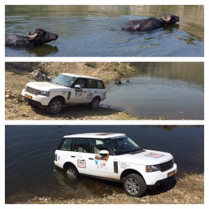 Onderweg spotten we een paar badende waterbuffels en de Kwek krijgt ook nog een beetje verkoeling.