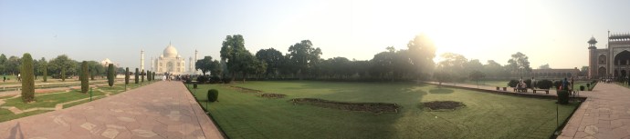 De wekker gaat om 05:30 uur en wij gaan in colonne met TukTuks richting Taj Mahal. Deze is op zijn mooist bij zonsopgang en als wij dachten vroeg te zijn, is het bij de ingang, net of we in de rij staan bij de Efteling, alleen het bord met wachttijd tot hier, ontbreekt. Mannen en vrouwen worden hier gescheiden vanwege het fouilleren. Eenmaal binnen op het terrein legt de gids, in de korte versie, op verzoek van 18 cultuurbarbarende Challengers, de geschiedenis van de Taj uit. Voor degenen die dit willen weten, echt een mooi verhaal overigens, zie Wikipedia.