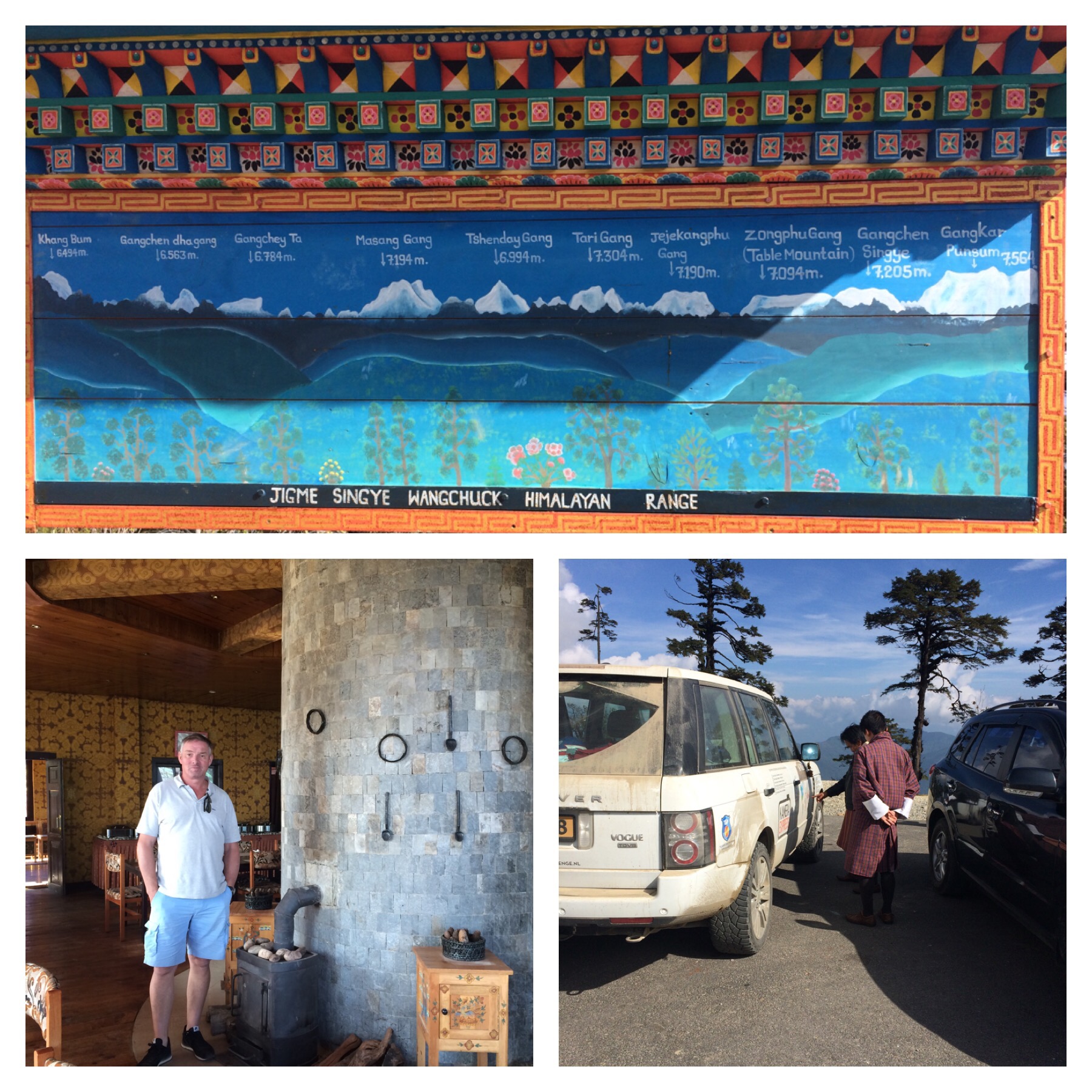 Bij de 1e koffiestop op ruim 2500m was het 8 graden maar er was een heuse berghut met vers gezette espresso en cappuccino van Illy. Ook hadden we prachtig uitzicht op de hoogste en besneeuwde bergtoppen van Bhutan.