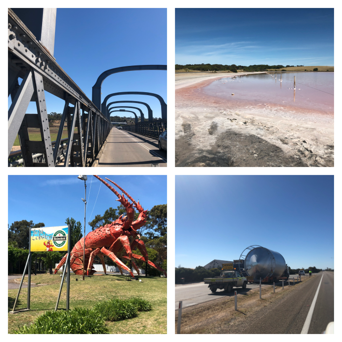 Na het mooie gedicht van Harry, heb ik vandaag toch wat moeite de juiste route de stad uit te vinden ☺️. Volgens het roadbook moeten we Murray Bridge zien, waar houseboten met happy en relaxte mensen over de 2500 km lange rivier de Murray varen, go pro en camera in de aanslag maar helaas is dit een gevalletje ‘ “een brug te ver”, wij zien slechts een niet bijzondere brug, en vies bruin water zonder houseboten ….