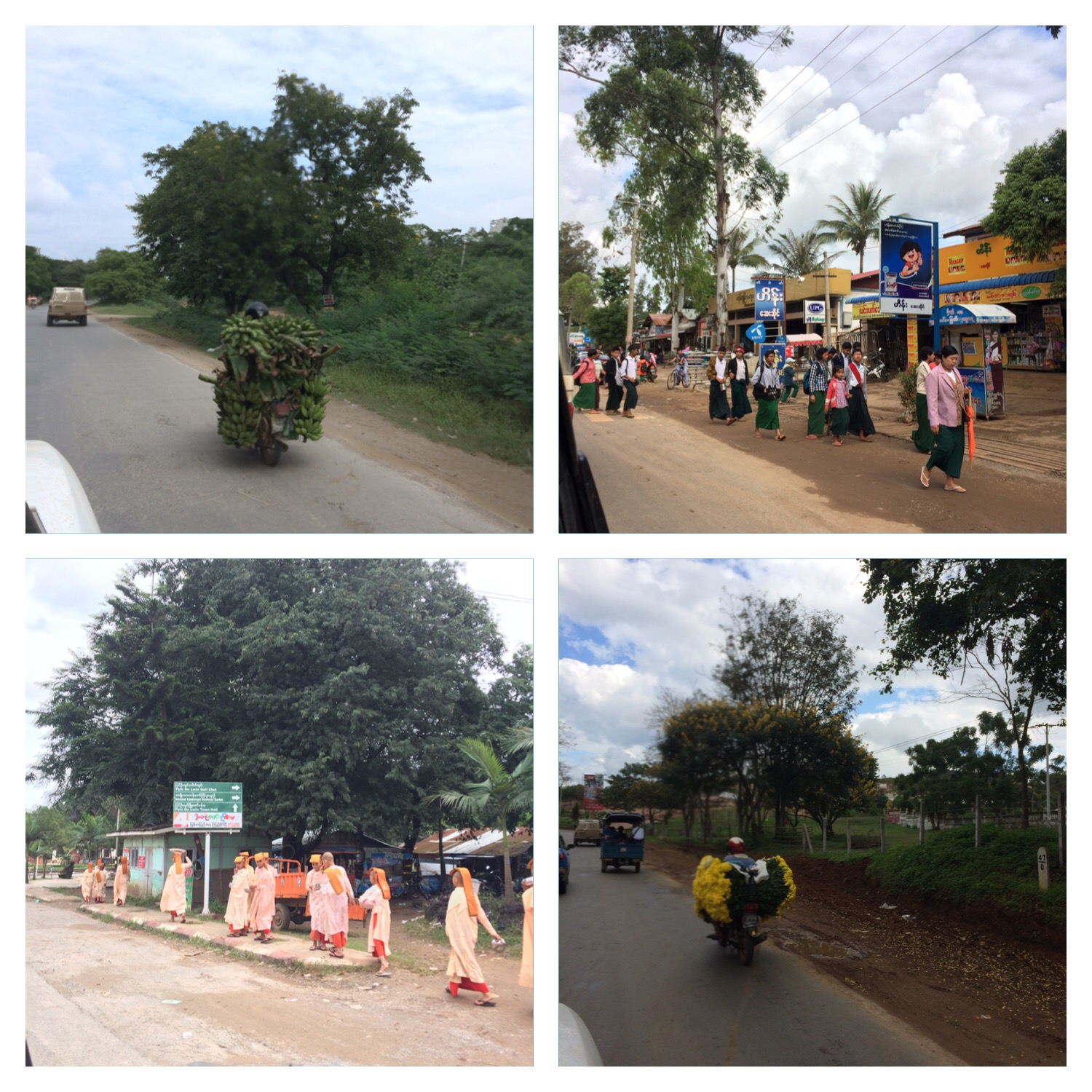 En het begint een beetje te miezeren, peet trekt bij de koffiepauze toch maar een lange broek en dichte schoenen aan, want het is 10 graden een groot verschil met de 27 van gisteren. We rijden nu langs kleine boerendorpen en kleine landerijen op terrassen tussen de bergen, waar veel boeren, met strooien punthoedjes op en gewapend in regencapes, gewoon aan het werk zijn. Dan is ineens weer een industriestad met grote en rokende schoorstenen.