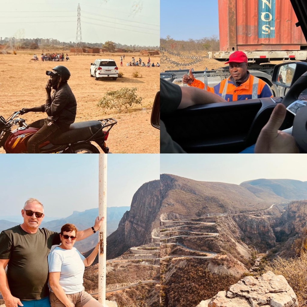 Even wat statistieken: 650 km, ongeveer 1.000 bochten, 400 verkeersdrempels, waarvan we er 1 over het hoofd zagen, omdat wij naar twee sportende Congolezen op een rotonde keken. 7 tolpoorten (peage), Congo is een voormalig Franse Kolonie, 7 politieposten (met dank aan Eric en Belinda in de Toyota Landcruizer, die voor ons de doorgang makkelijk hebben gemaakt en overal met een saluut of een duim omhoog 👍🏻 door mochten rijden.