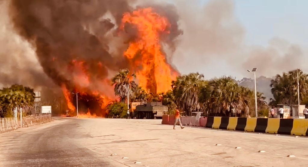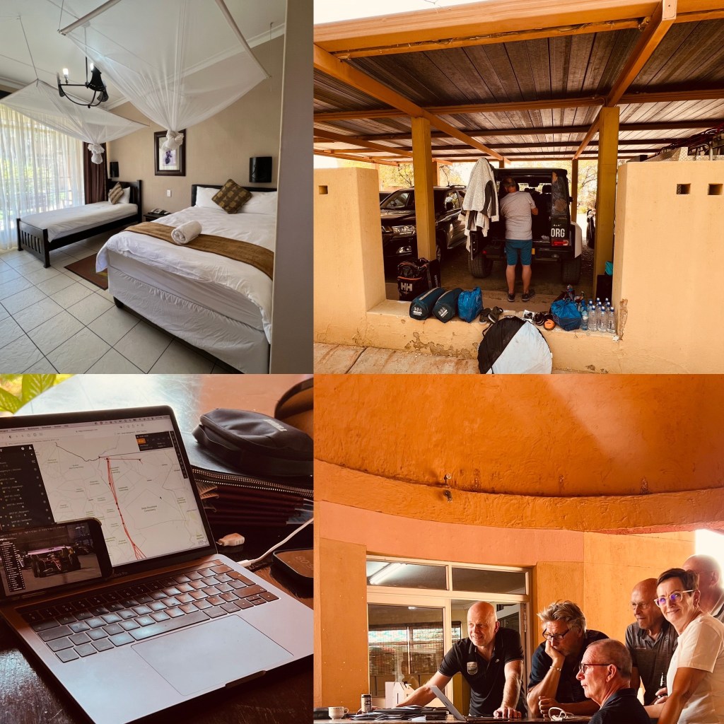 Toen bleek dat het nog wel even kon duren, besloten wij niet langer wachten en gingen aan onze eigen wedstrijd 🏁 beginnen. Bij het wegrijden liet Peet de luchthoorn van de MB Rhino “even” horen. Wel tientallen reuze vleermuizen (🦇 of vleerhonden) schrokken en vlogen uit de Ecalyptus bomen die, bij het hotel stonden.