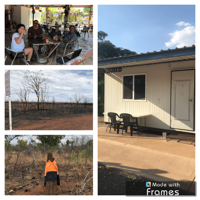 Het bezoek aan het cultureel centrum is ook weer leuk, er zitten een paar Indigenous vrouwen schilderijen te maken op linnen. Het valt ons op dat ze bijna allemaal dik zijn, daarom zitten ze op 3 in elkaar gestapelde plastic stoelen 😬.